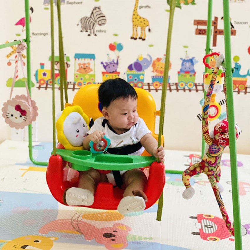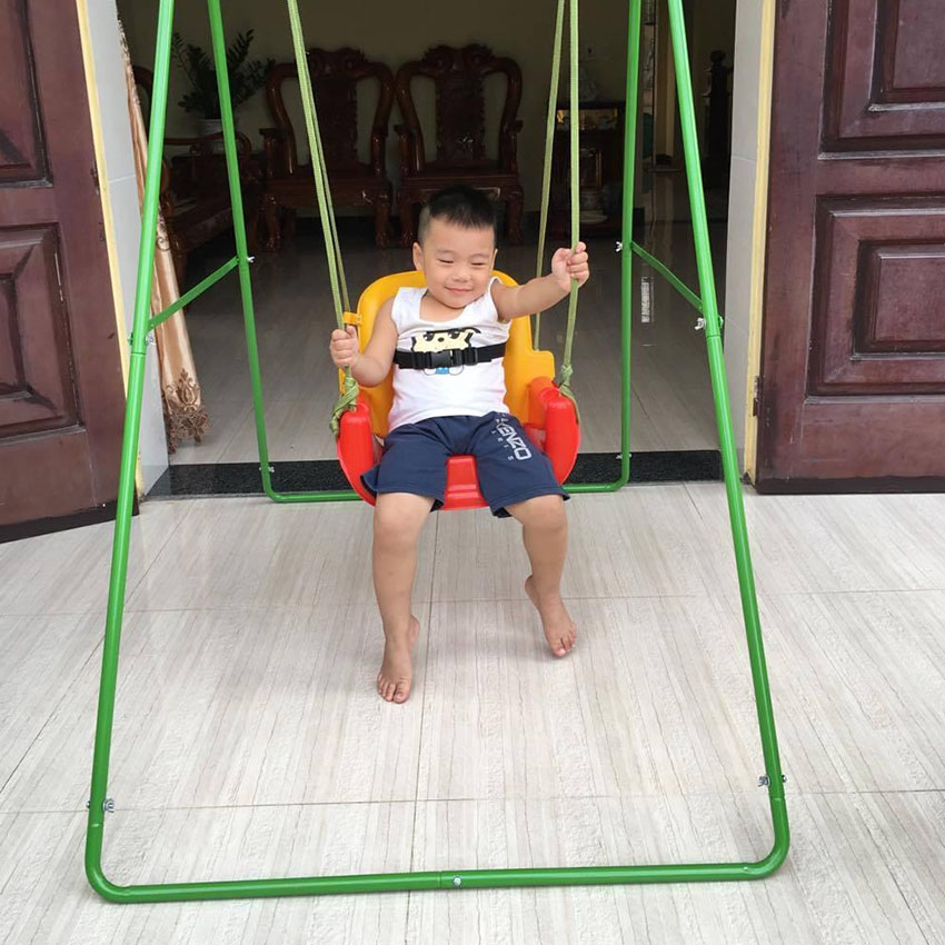 Khi lắp thêm ghế xích đu, khung trở thành Xích Đu Cho Bé với chức năng vừa ngồi chơi, vừa ăn dặm tiện lợi.